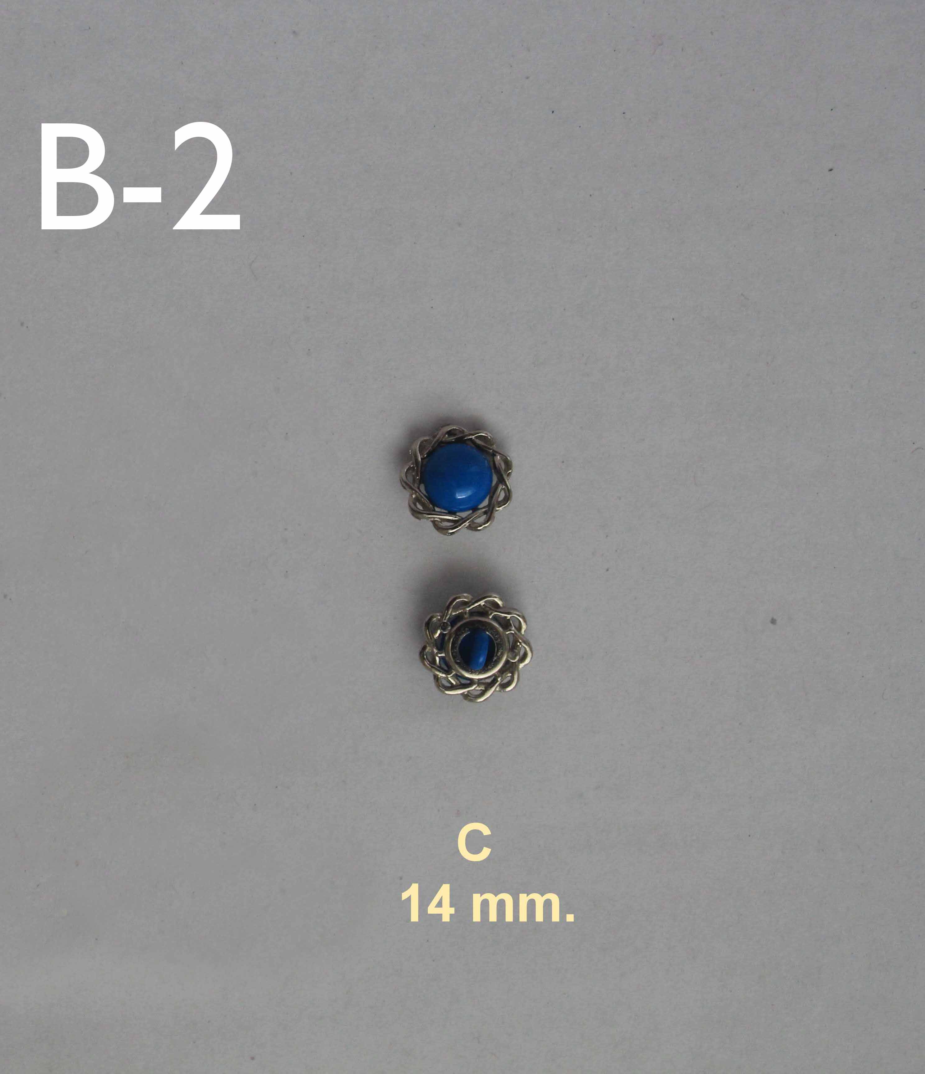 • Botón semiesférico color azulina con filigrana dorada (14 mm)