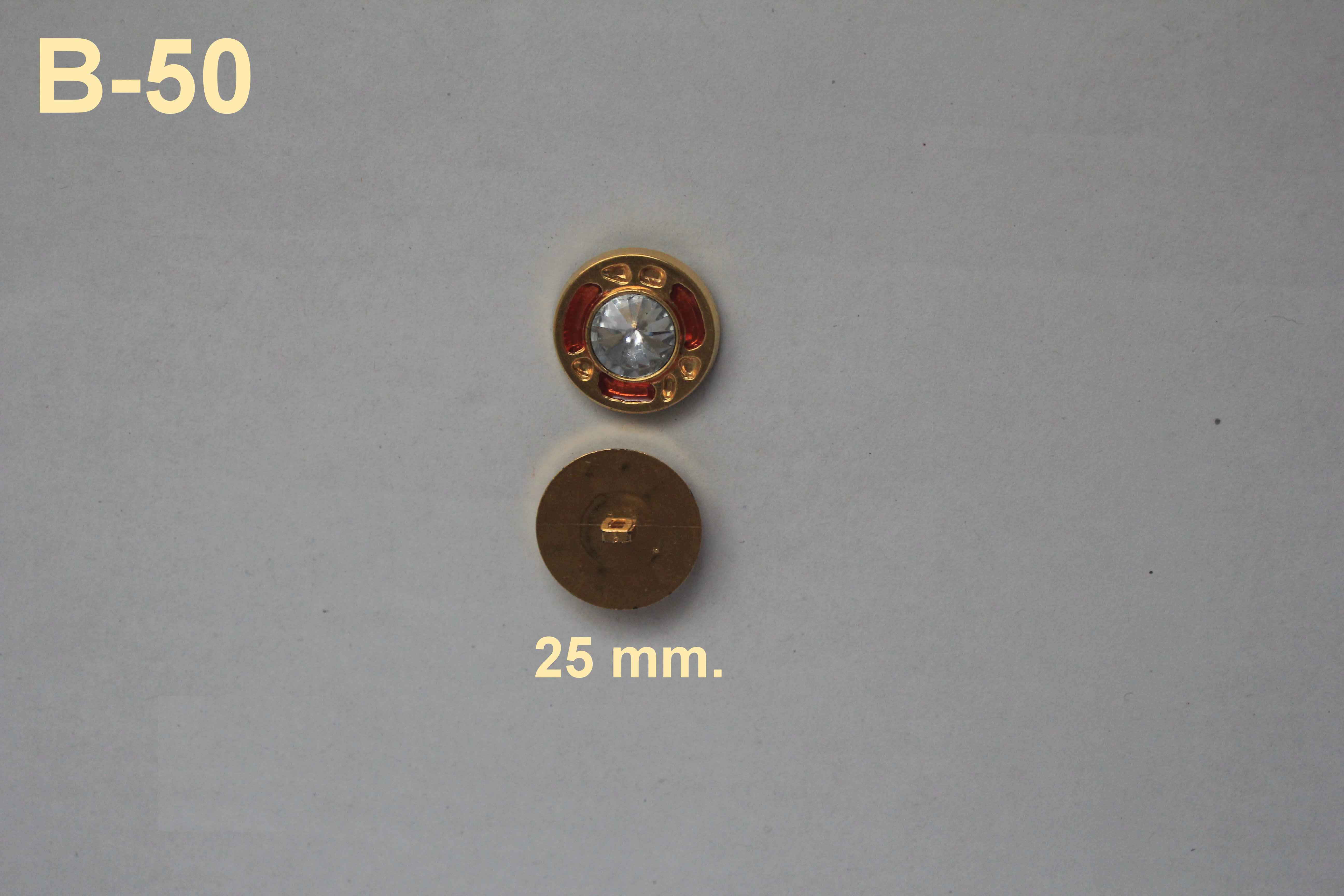 • Botón joya dorado con cristal en el centro y detalles esmaltados color cobre (25 mm)