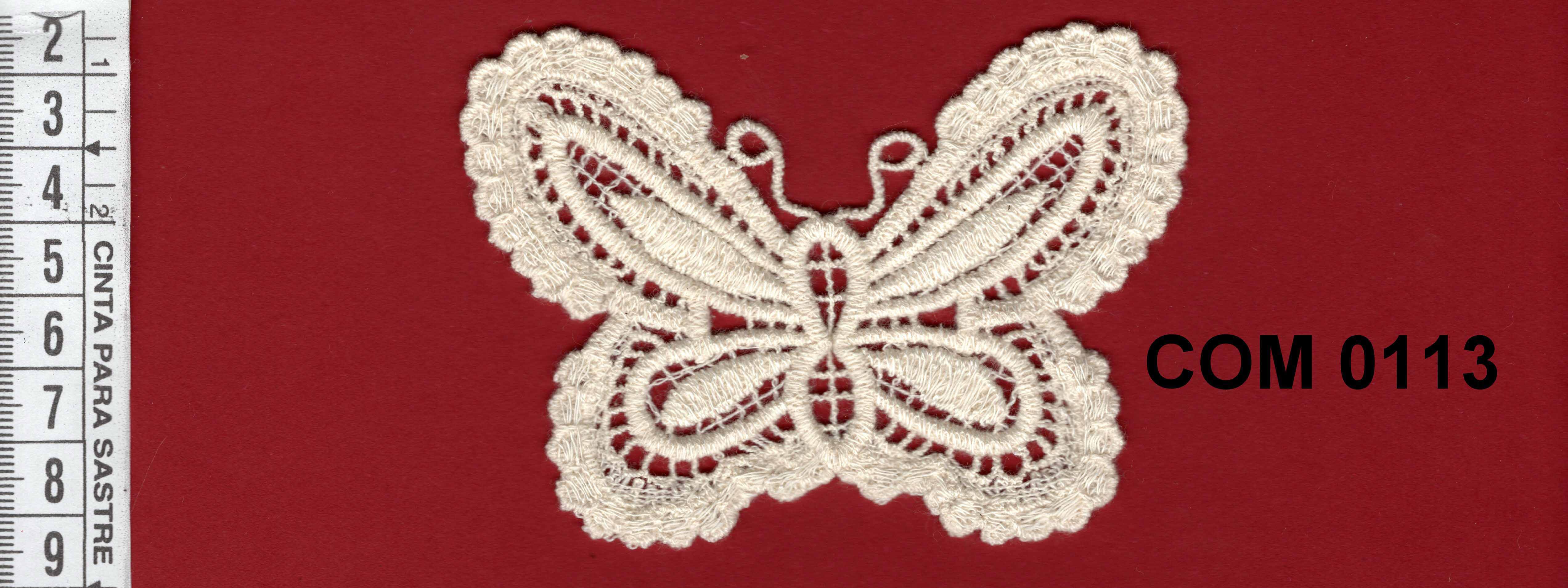 Aplicación de mariposa de guipur color natural. Admite teñido.