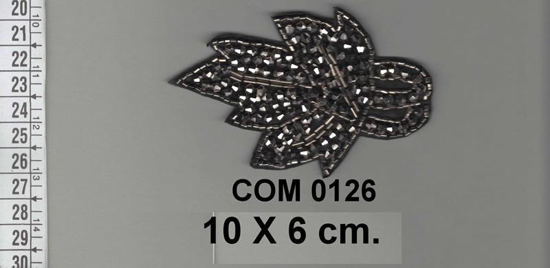 Aplicación en forma de hoja ribeteada por cuentas y formas poliédricas de níquel.