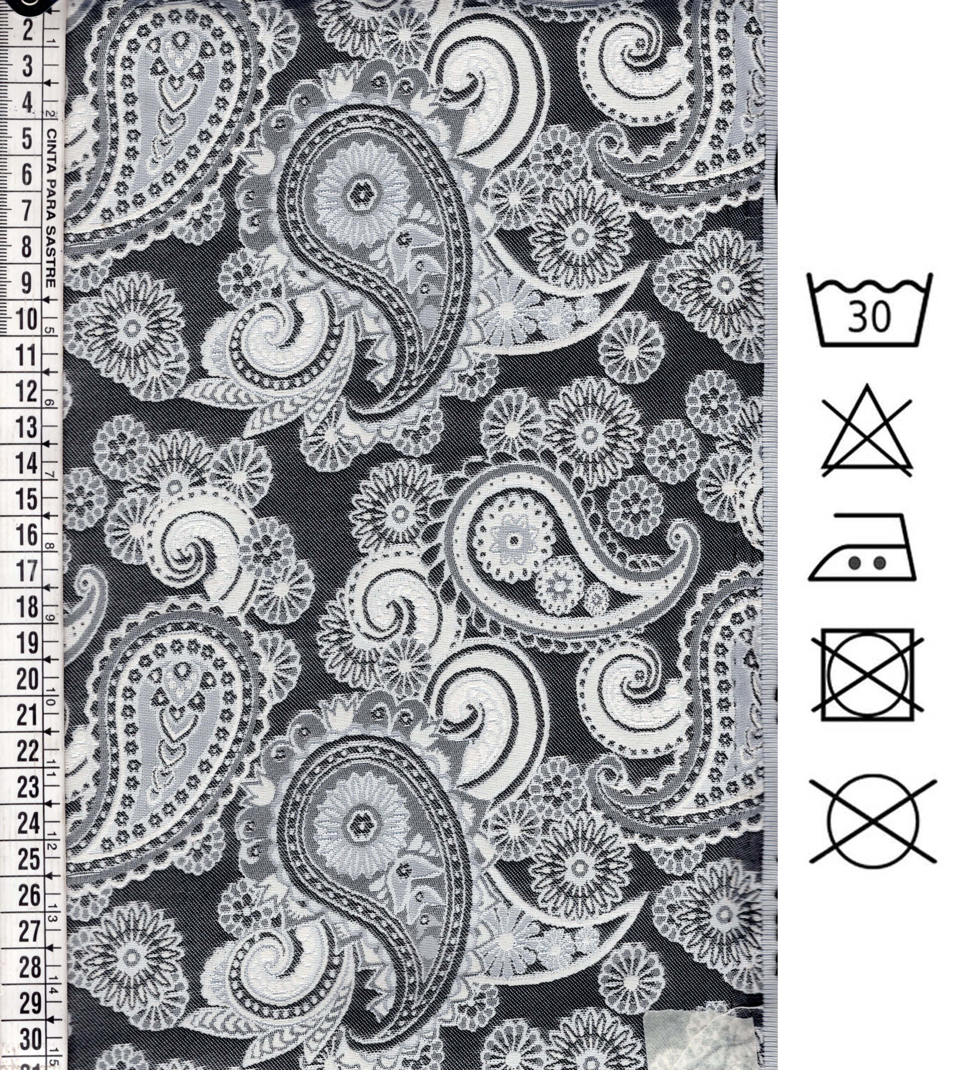 • Jacquard en tonos de gris con motivos de Cachemira y Paisley