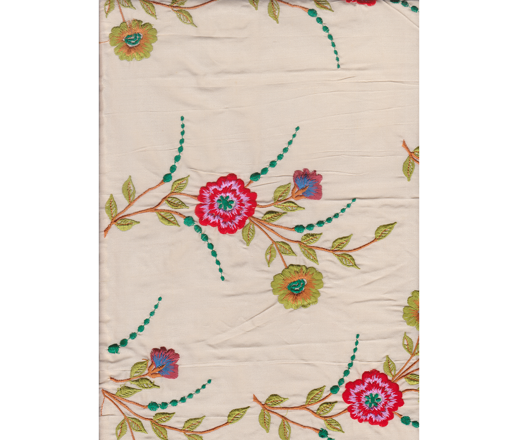 Pieza de dupión de seda beige con flores tipo mantón de Manila , bordadas en rojo, verdes, teja, azules, marrones...