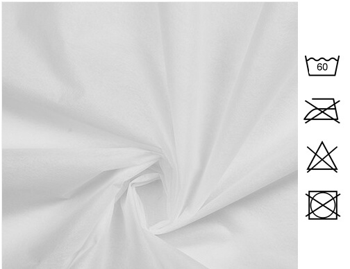 Tela sin tejer de polipropileno. Repele los líquidos. No infiltra el polvo. Esta tela tiene muchos usos: forros, rellenos,hostelería, decoración, envoltorio de regalos, bolsas guardarropa, confección casera de mascarillas higiénicas.... Lavable a alta temperatura.
